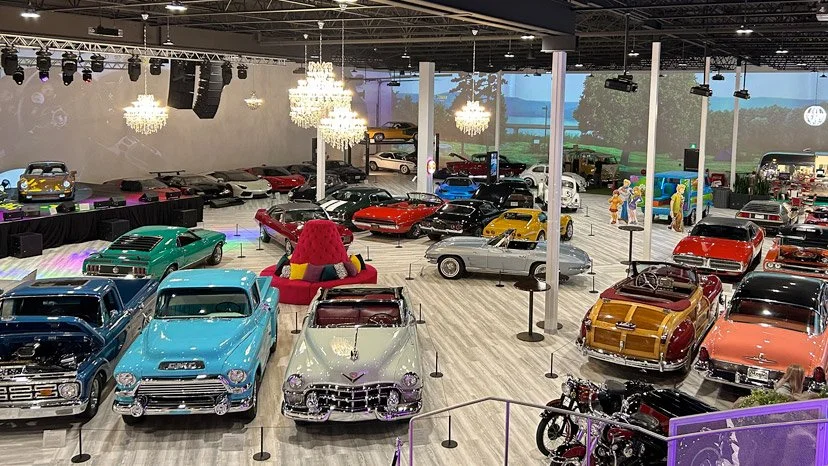 A Gallery of Icons: Explore over 75 of the world's most sought-after vehicles, from mid-century legends to modern-day marvels. Immersive Visuals: Experience the presentation on a massive 9x32 foot digital screen, one of the largest and most advanced in the country. The Mezzanine Lounge: Take in the panoramic views of the showroom floor from the stylish upper-level lounge. Retro Flair: Grab a refreshment by the iconic vintage Airstream and enjoy an atmosphere where industrial-chic meets timeless luxury.